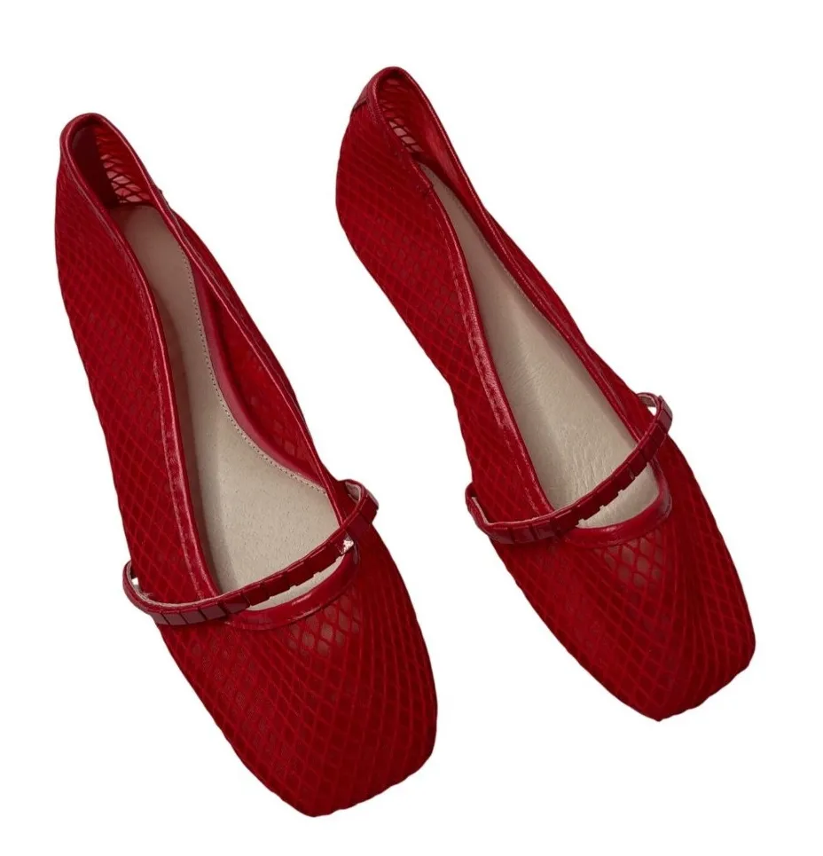 Like New Sanctuary Womens Chic Red Mesh Square Toe Mary Jane Ballet Flats Size 9.5 M • Square toe de... Show more