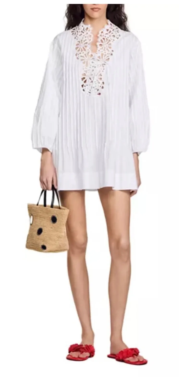 Size tag missing- size small based on measurements and fit Slight blue tinge to lace detail Scalloped V-neck with openwork-lace trim and tie detail Drop shoulders, long blouson sleeves Pintucks at front, back, and sleeves Pullover style Long puffed sleeves Pleats Elasticated cuffs Wrap over V-neckline with ties Main material: 100% Organic cotton Lace band: 100% organic cotton Measurements approximate laying flat 20" bust, 30" length, 19" sleeve Romantic, Girly, Cottage, Eclectic, boho, Indie, Valentines, Date Night, coastal, beach, travel, tropical, Eclectic, bachelorette, special occasion, holiday, derby, concert, minimalist, vacation, travel, cruise, girls trip, resort, chic, birthday, event, winery, wine tasting, honeymoon, retro, vintage, pretty, feminine, engagement, Euro Summer, Picnic, Mediterranean, Neutrals, Club ready, Scandi, Euro, Polished, Rodeo, Maximalism, Botanical, Garden, Timeless, Ranch