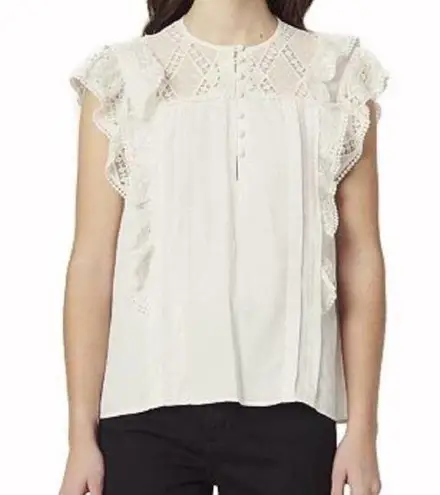Sandro Paris Marka Lace/Embroidered Ruffle Short Sleeve Cream Top Size 8 - $70 - From Crystal