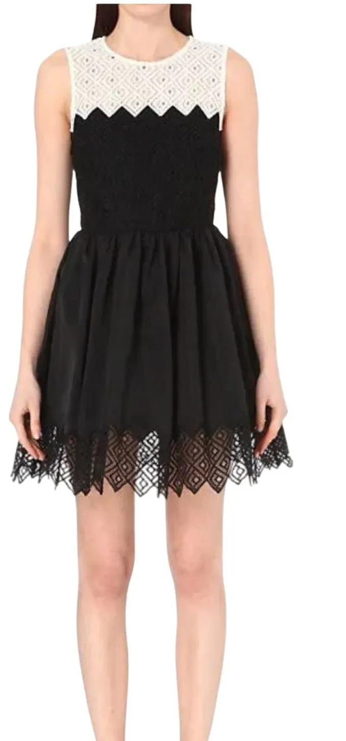 Sandro Paris Black & White Lace Bust Full Skirt Fit & Flare Mini Dress Small Round neckline with b... Show more