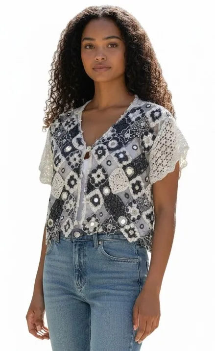 Sandy Starkman NWOT Floral Vintage Crochet Mirror Cardigan Sweater Sise S Unique piece with so much... Show more