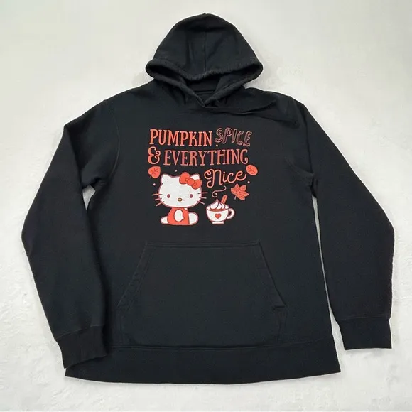 Sanrio Hello Kitty Pumpkin Spice & Everything Nice Black Hoodie Sweatshirt Sz M Preowned in great u... Show more