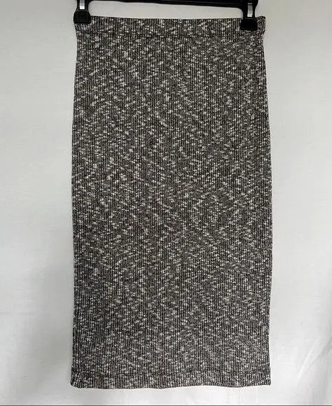 NWT Sans souci knit pencil skirt. Size small ribbed knit. Black white gray elastic waist band pull on style skirt. The skirt has some stretch. Measure are pictured for reference It measures about 24 1/4 in length from waist to hem waist is about 12 1/4 flat lay so about 24.5 diameter It can be worn high waist or lower.