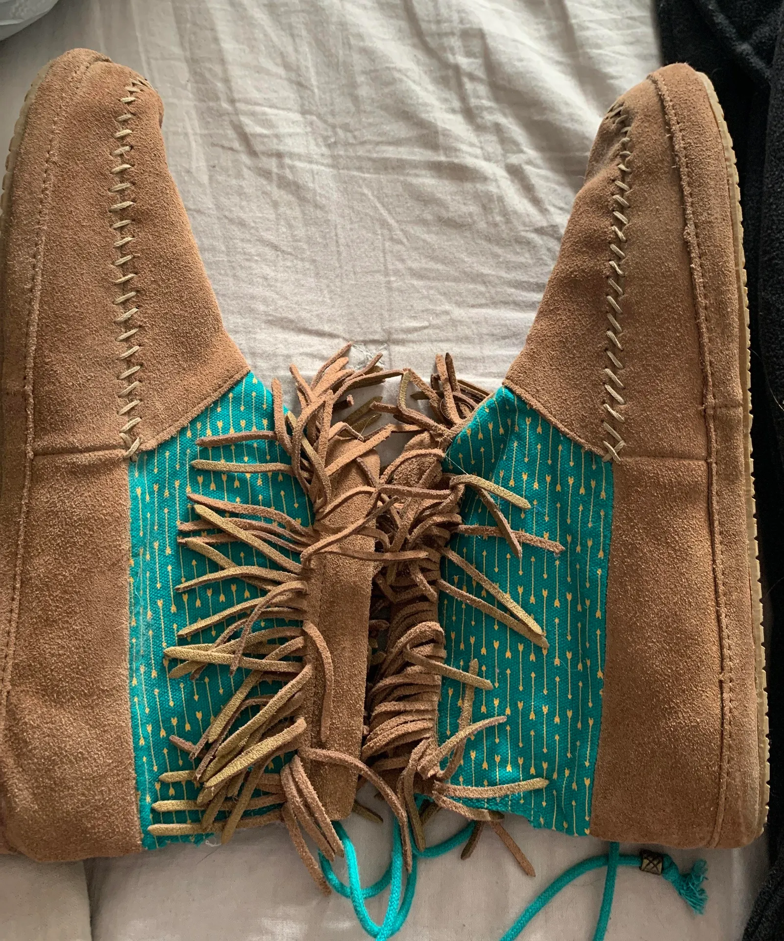 Sanuk Moccasin boots Worn once Size 11 Has tie back Has some scuff in the heel, most of the wear s... Show more