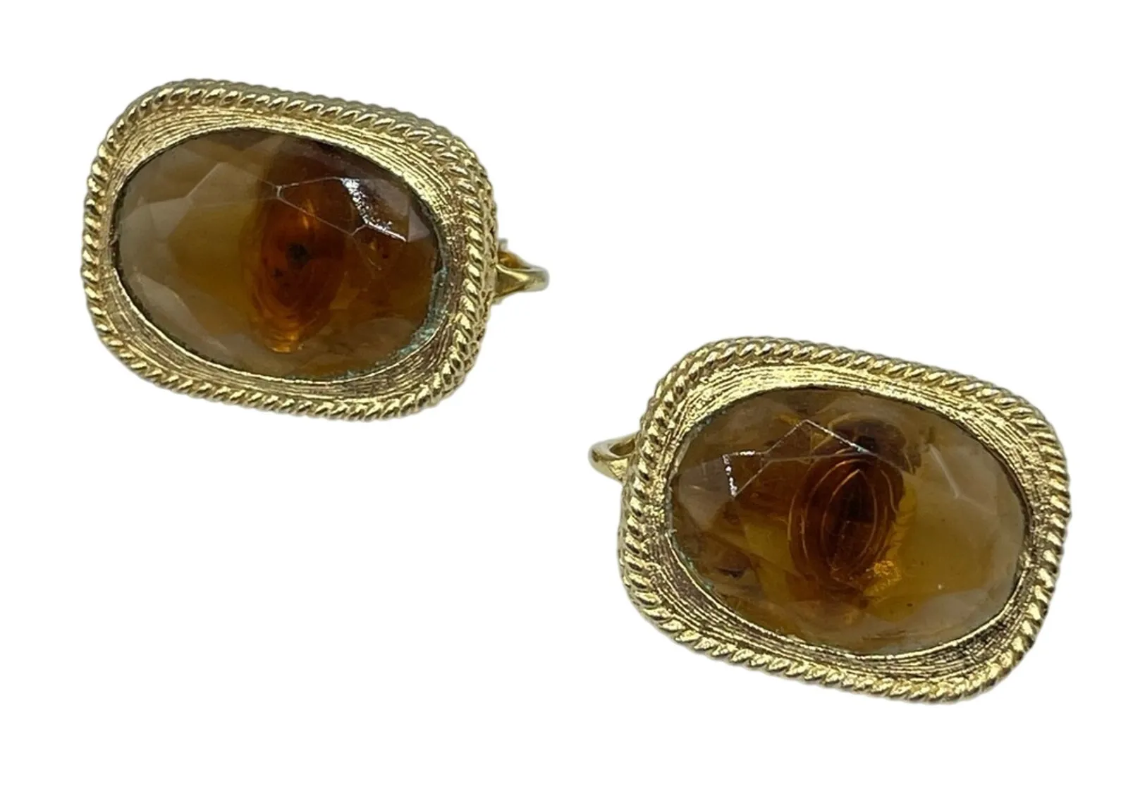 Sarah Coventry Vintage Brown Facetted Glass Gold Tone Clip On Earrings Estate - $23 - From Lisa