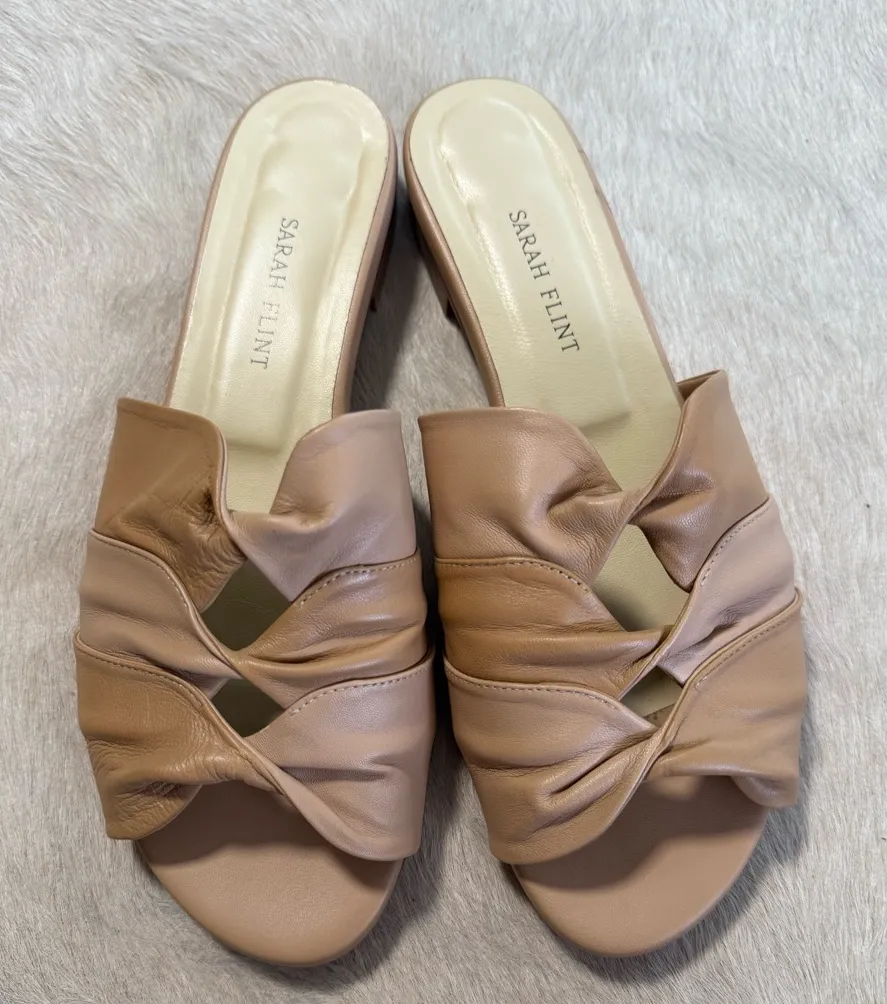 Sarah Flint Tan Leather Slides Sandals Made in Italy Like New Euro 40 US 9 9.5 - $76 - From Medea