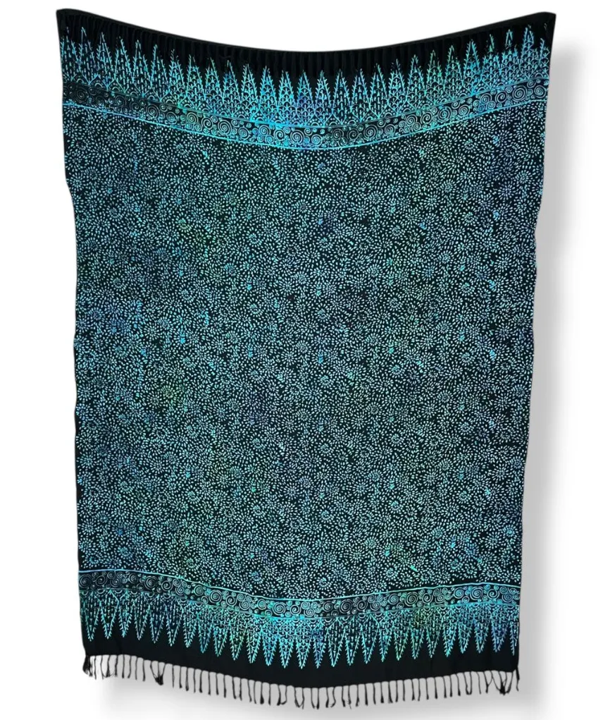 Sarong with abstract batik pattern with little bursts of teardrop shaped dots all over in turquoise... Show more