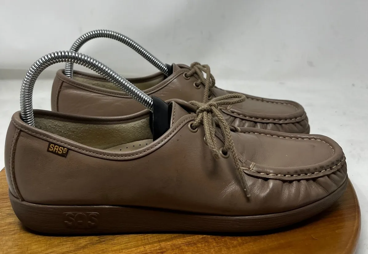 SAS Loafer Womens Siesta Lace Up Leather Brown in Mocha Size 11 Brand: SAS Size: 11 Condition: Good, preowned Features: This retro style wraps supple leather completely around the foot with genuine moccasin construction. The cushioned inside lining, padded arch, and soft heel make for a plush feel with every wear. Heel Height: 1.125". This item does not have a removable footbed. Genuine Moccasin Construction: The hand laced moccasin construction wraps soft supple leather completely around your foot and allows great flexibility. SAS Foot-Shape® Last: Developed and crafted by SAS Shoemakers, this unique last follows the natural shape of your foot, providing all-day comfort while giving plenty of room for your toes. Cushion Outsole: Superior Polyurethane material is durable, flexible, and provides long lasting cushion for all day comfort. - All measurements taken while laying flat on one side. Please double to get the measurement all the way around. - Measurements are approximate, please review them prior to purchase to ensure proper fit. -Color may vary with device and lighting - Please review all photos thoroughly - Please feel free to ask any questions - We ship fast all items are shipped within 24hrs