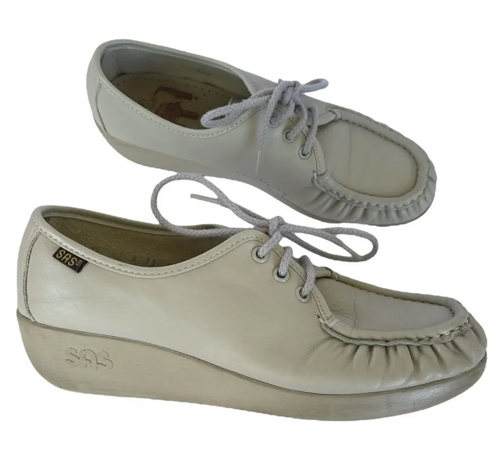 SAS Siesta Shoes Women Size 7 Bone Leather Handsewn Lace Up Oxfords Made in USA - $38 - From Gigi