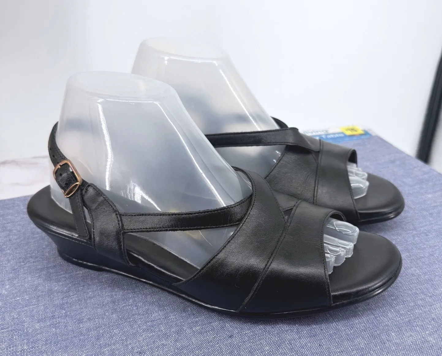 Excellent Pre Owned, Gently Used, Gently Worn Condition No flaws or damage SAS Tripad Comfort black leather sandals offering adjustable backstrap and crisscross vamp design. Contoured footbed provides soft, shock-absorbing cushion for natural arch support. Extra toe room allows for comfortable toe splay. Flexible sole with a shock-absorbing wedge heel enhances stability and reduces impact with each step. Perfect for everyday errands or casual outings. Style: Strappy Department: Women Upper Material: Leather Features: Straps, Buckle, Adjustable Strap, Arch Support, Cushioned Closure: Buckle Pattern: Solid Accents: Buckle Type: Sandal Heel Height: Low (1-1.9 in) Type: Sandal Insole Material: Polyurethane Outsole Material: Polyurethane Lining Material: Leather Keywords: SAS Shoes, Black Sandals, Leather Sandals, Wedge Heels, Comfort Shoes, Orthopedic, Supportive, Adjustable Strap, Wide Width, Everyday Wear, Casual Shoes, Travel Shoes From A Smoke Free Pet Friendly Home All Questions & Offers Are Welcome 📦Always Ships Same Or Next Business Day