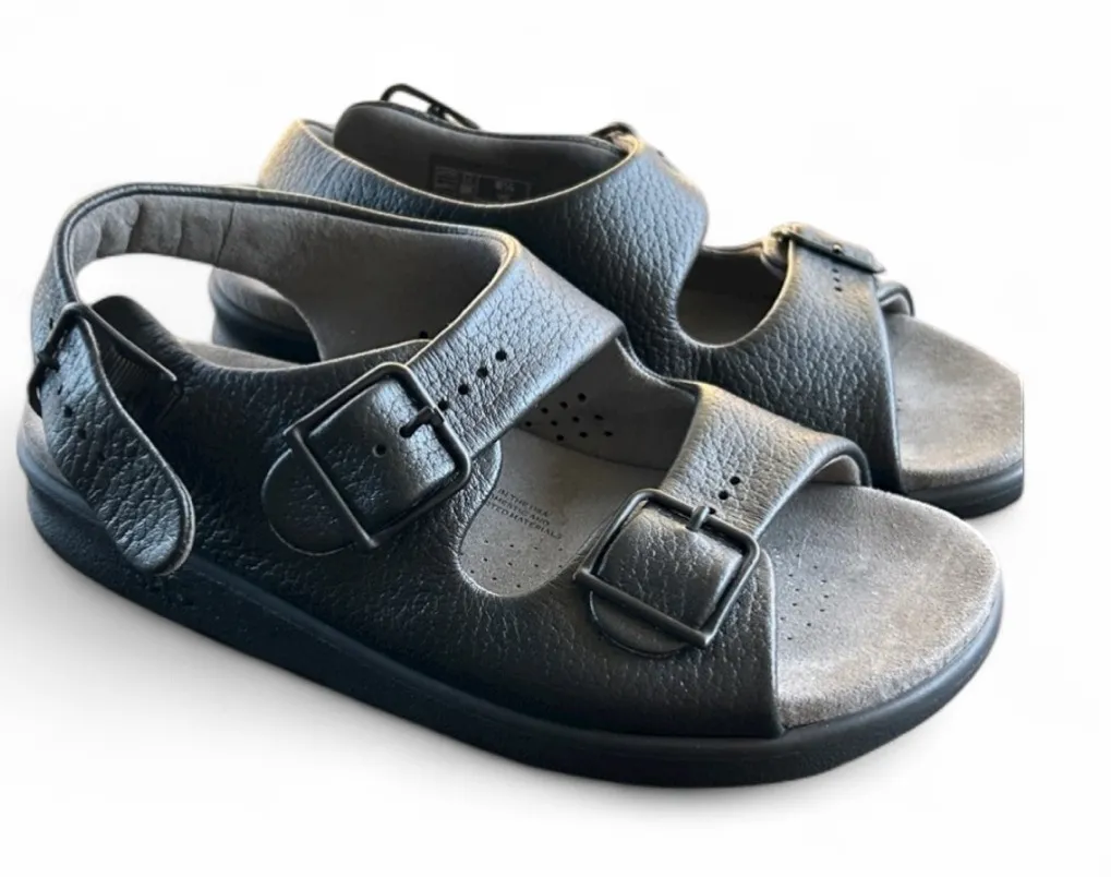 SAS black pebble leather three buckle adjustable closure. Vented padded made in the USA of domestic and imported materials. The style is H9381249. It’s 6 1/2 women or 6 1/2 wide. It’s the tripad comfort hardly worn