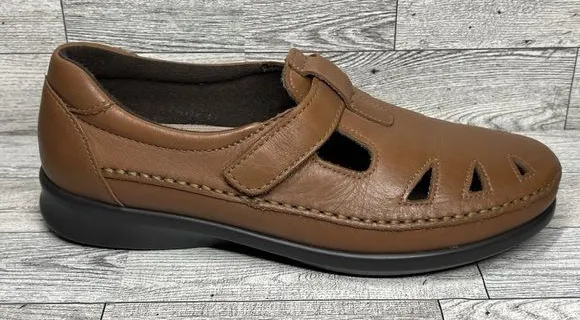 Experience day-long comfort with the SAS Women's Roamer Shoes, a perfect blend of style and wellbeing. Crafted with a chestnut brown leather upper and a supportive foam insole, these Mary Jane loafers are designed to keep your feet at ease. The adjustable strap and hook & loop closure ensure a secure and personalized fit, while the rubber outsole provides durable traction. The timeless solid pattern and classic Mary Jane style make these shoes a versatile addition to any wardrobe. Ideal for casual wear, the flat heel maintains a low profile for all-day wearability. With a size 7 standard shoe width and a fabric lining, these loafers are constructed to offer both comfort and elegance.