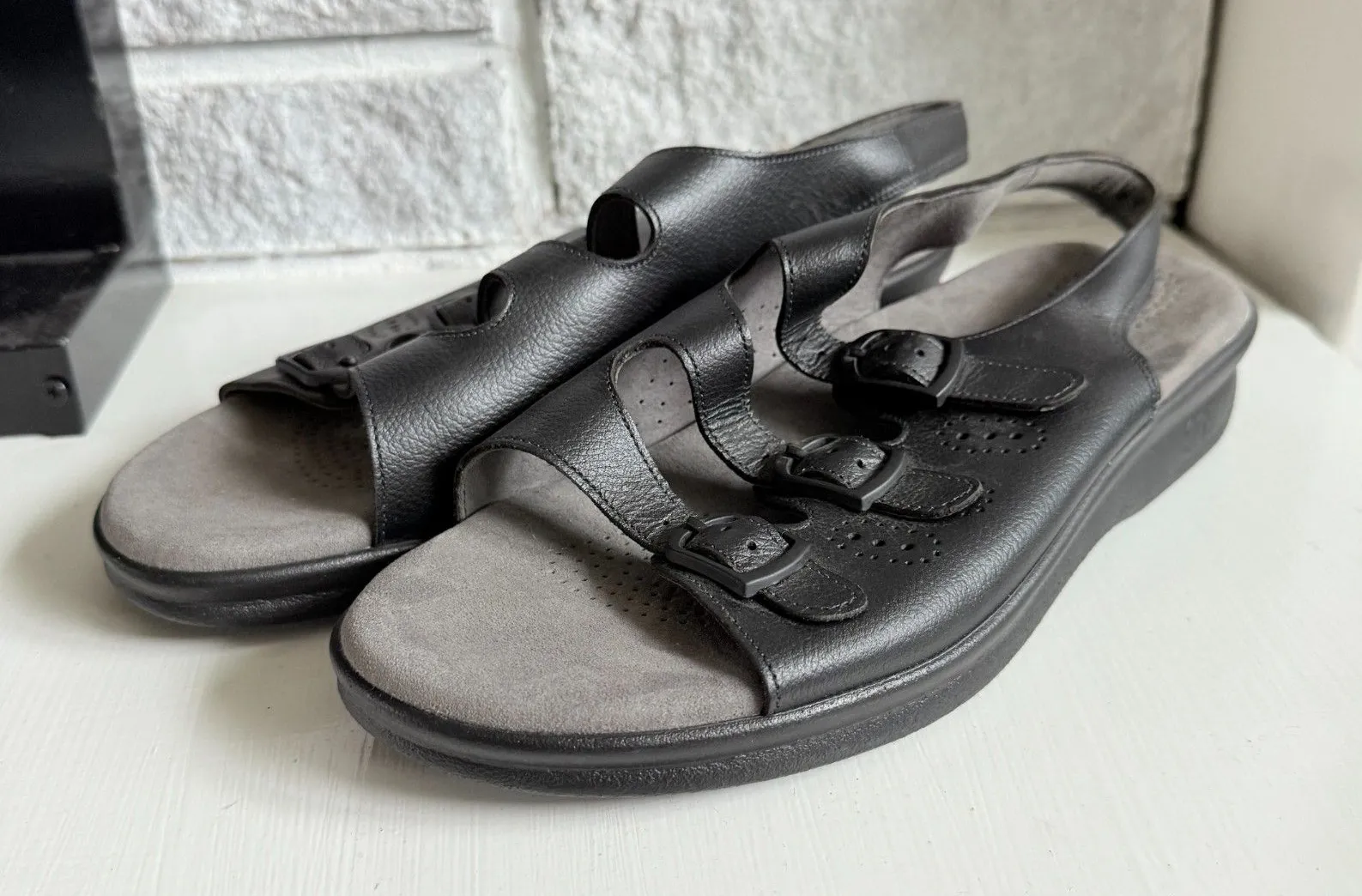 New without tags! SAS Women's Size 8.5 Wide Trio II Black Open Toe Buckle Slingback Comfort Sandals.... Show more