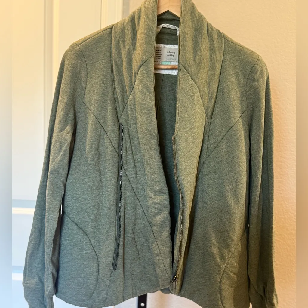 Saturday Sunday by Anthropologie asymmetrical zip jacket in a versatile olive green. Features a mode... Show more