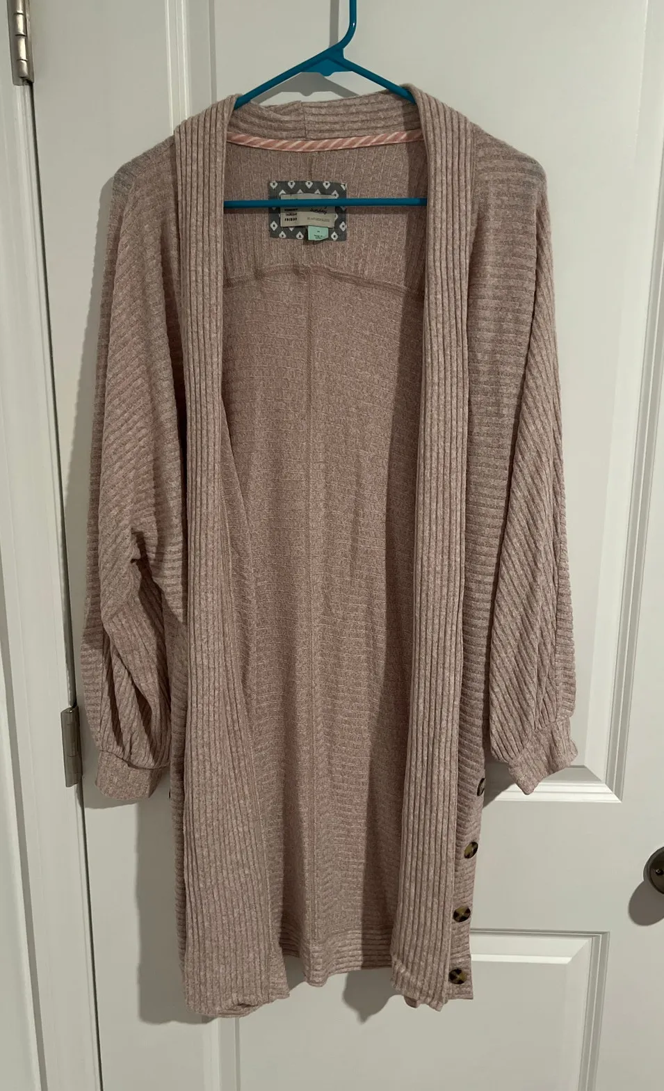 Saturday/Sunday by Anthropologie Ribbed Long Cardigan – Size Medium – Beige/Pink Undertone ✔ Brand:... Show more