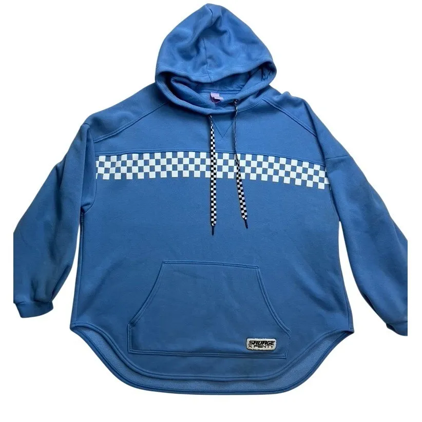 Measurements: • Chest (pit to pit): 25 in • Length (shoulder to hem): 26 in Style: Pullover Department: Women Type: Hoodie Closure: Pullover Theme: Festival Features: Pockets, Oversized Fabric Type: Fleece Pattern: Check Material: Cotton Blend, Polyester Blend Accents: Logo Sleeve Length: Long Sleeve Neckline: Round Neck Lining Material: Cotton Performance/Activity: Gym & Training Keywords: Savage Fenty, hoodie, blue, checkered, logo, oversized, athletic, sportswear, pullover, loungewear, casual, streetwear, comfortable, embroidered Ships fast from a smoke and pet free home.