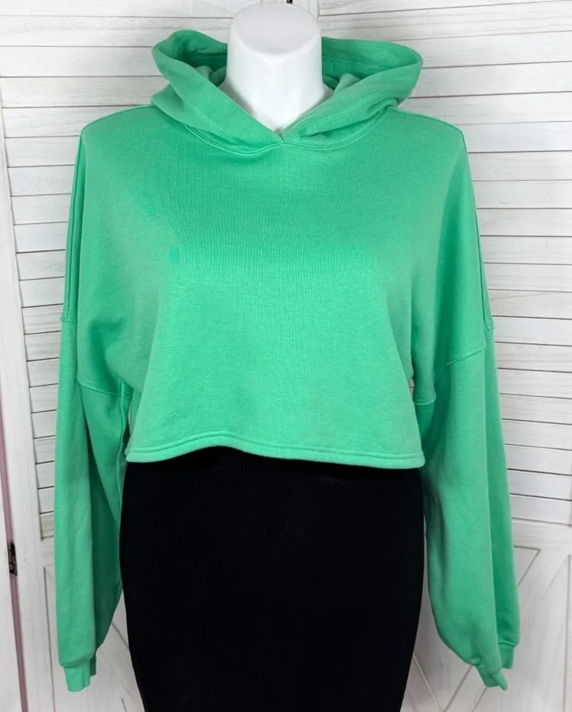 Savage X Fenty Essential Fleece Scope Logo Cropped Hoodie Sweatshirt Green Size XL Kelly green C... Show more