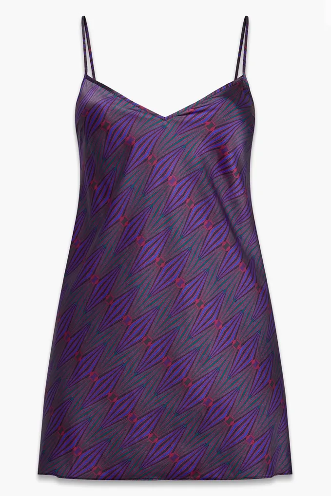 SAVAGE X FENTY Elegant and stylish purple geometric slip dress. Size 8-10 Perfect for a comfortable night's sleep or lounging at home, the soft fabric and intricate design offer both comfort and sophistication. A-line satin silhouette, V neckline, adjustable straps. Brand new without tag. ⚠️Please review all pictures⚠️ ☘️Questions and offers are welcomed☘️