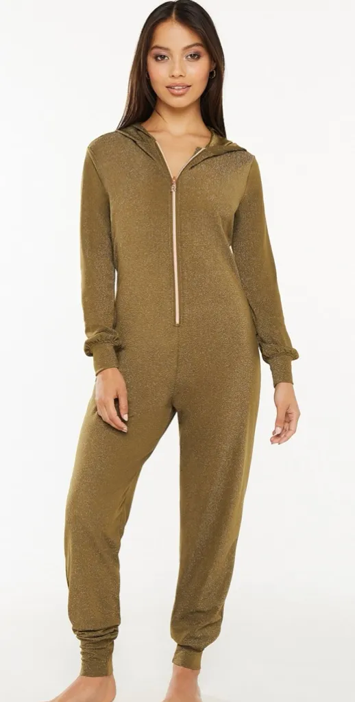 I’m selling a Savage x Fenty Sleep & Shine Hooded Onesie in Military Olive Green Size Medium for $50. Sleep in and stay up late in this Sleep & Shine Hooded Onesie. Featuring a flattering silhouette with a relaxed fit, hood, and zipper front. * Excellent condition * Soft, shimmery lurex knit * Hooded onesie * Long sleeve with cuffs * Rose gold-tone zipper with X logo pull * Relaxed fit * 78% Nylon, 15% Spandex, 7% Metallic * Hand wash cold, line dry Approximate measurements lying flat: * Pit to pit: 29” * Inseam: 30” * Length from highest point of shoulder to hem: 58”