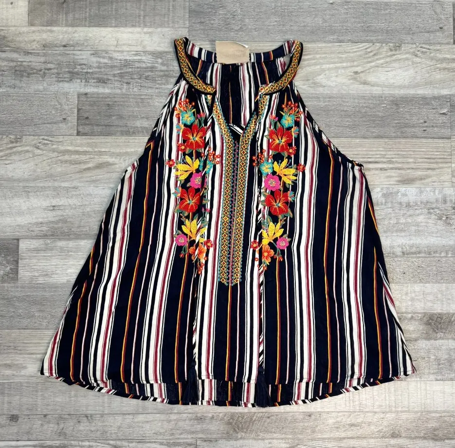 Savanna Jane Black Stripe Floral Embroidered Halter Style Top K27 - $24 - From Rebekah