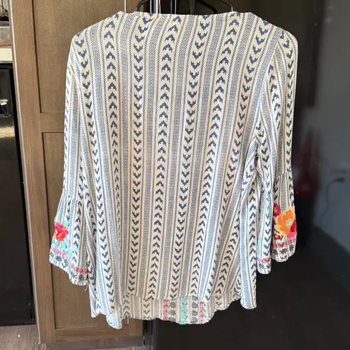 SAVANNA JANE Women's Floral Embroidered Leopard Bell Sleeve Tunic Top Sz M Blue Size M - $25 - From Lib