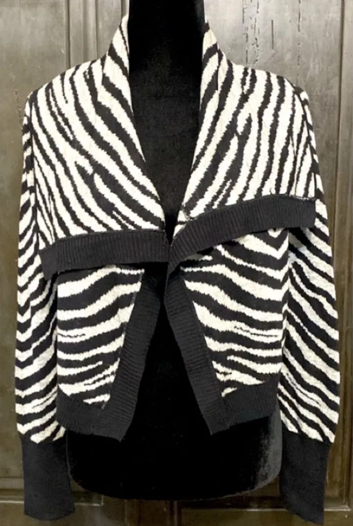 Say What? black/gray crop animal pattern cardigan sweater. Size medium. ***Refer to measurements as size tag removed. Gently warn & excellent condition. Beautiful. Measurements approximately 18” from armpit to armpit x 15” long. Non-smoking home. Priced at as is condition. Don’t like my price make a reasonable offer! And thank you for checking my closet! Black - $12 - From Debbie