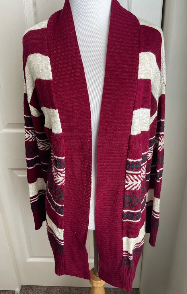 Saw What Cardigan in preowned condition, some signs of wear please see pictures. Size Medium but can fit Large. Smoke free home. Bundle with other items in my closet & save on shipping!