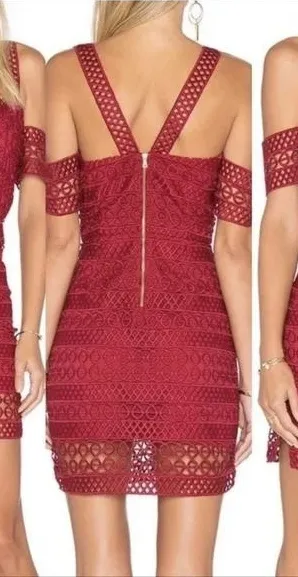 Measurements: Armpit to Armpit Approx 16' Length Approx 35' NOTE: NWOT - I accidently ripped off the tags Style: Bodycon, Mini Dress Length: Short Department: Women Sleeve Length: Sleeveless Pattern: Geometric Occasion: Party/Cocktail Fabric Type: Lace Theme: Clubwear, Bohemian Neckline: V-Neck Season: Summer, Spring Keywords: burgundy dress, lace dress, cold shoulder, mini dress, party dress, evening dress, cocktail dress, women's fashion, special occasion, elegant dress, romantic dress, date night dress, anthropologie, Hoco, prom, formal, romantic, coquette, fairy goth, dainty, feminine Thank you for viewing my listing! Please see the photos for a detailed look at its CONDITION. Feel free to reach out with any questions.
