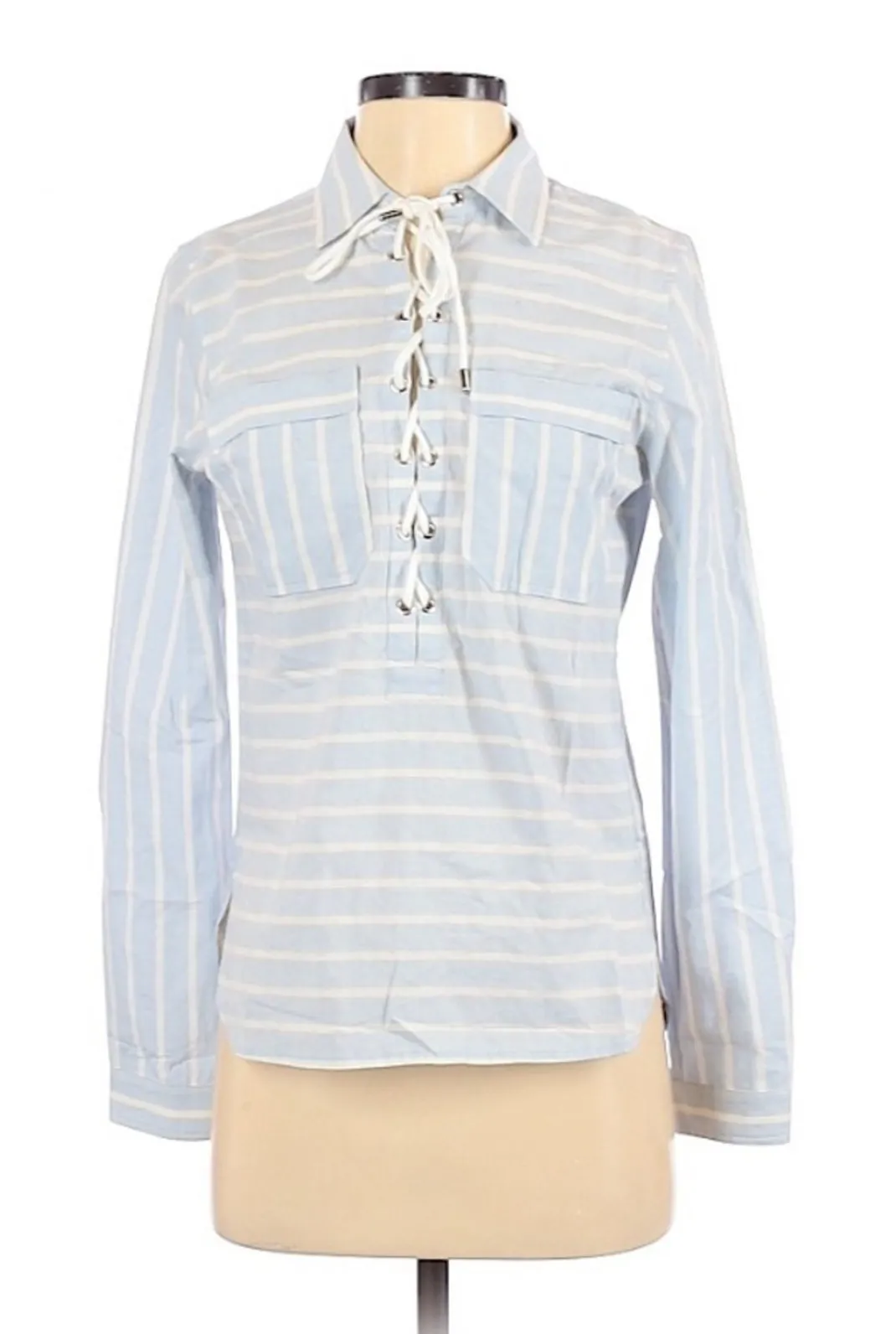 Saylor Blue White Striped Long Sleeve Blouse Womens Xs Lace Up Coastal Nautical - $33 - From Lisa