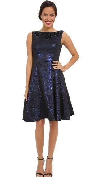New with tags Maggy London Sleeveless beaded yoki metallic brocade Fit and Flare Dress Size 4 Color blue/black A- line Formal Fitted Fashionable Beautiful dress for any formal occasion! Visit my profile for more listings! Bundle and save WD100720-042221