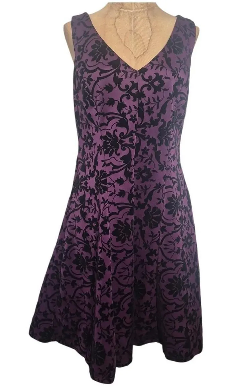 Condition: Excellent pre-owned Size: 6 Color: Purple, Black Material: 95% Polyester, 5% Spandex (Shell), 100% Polyester (Lining) Flaws: Minimal signs of wear Made in India Zip back closure Y2K Goth Romantic Formal Cocktail dress Sleeveless Velvet accents Pockets #Gothic #formal #cocktail #y2k #romantic