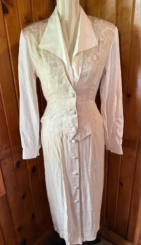 Chic cream dress with button-up design. Ideal for elegant events. Vintage Miss Scarlet size 6 Elega... Show more