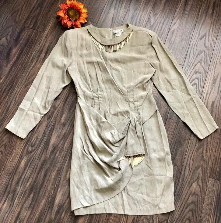 ❤️PRE LOVED VINTAGE 80’s❤️ SCARLETT Size | 11/12 | SCARLETT Long Sleeved Wrap dress with front tie Beading Detail Zip up back, shoulder pads **SEE LAST PIC** Stiching is slightly coming apart at seams ⭐️Bundle and SAVE on SHIPPING⭐️