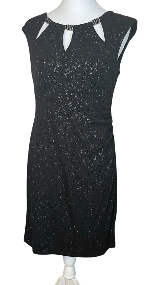 Excellent Pre-Owned Condition (see pics for details) Features: •Style Profile: Scarlett Women's Black Sleeveless Cut Out Neck Party Cocktail Dress 8 Sparkly •Flaws: No holes, stains, or tears •Please see photos for measurements (in inches) •Washing Instructions: Hand Wash Size:8 Color: Black Tags: Sparkle, Sparkly, Stretch, Cocktail, Party, Gala, Evening, Special Occasion Smoke free home. Bundle 2 or more items for a discount! I am happy to answer your questions and am open to reasonable offers! Super fast shipping: I ship out the next business day! Please note that all pre-owned items may have slight imperfections.