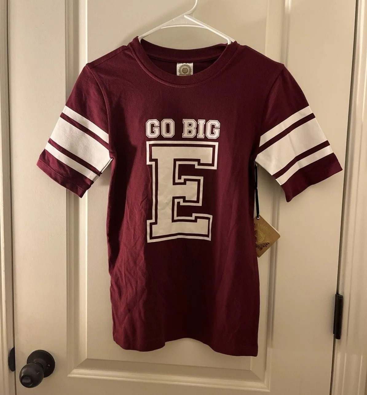 School House "Go Big E" Jersey Style T-Shirt Women's Juniors Size S Maroon White - $33 New With Tags - From Sandra