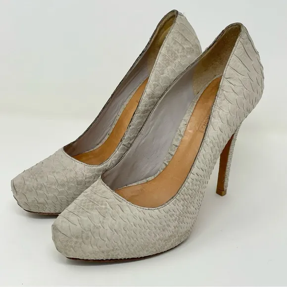 Schutz Platform Heels Size 8 Snake/reptile print Platform Stiletto Color is a Taupe Gray Uppers are... Show more