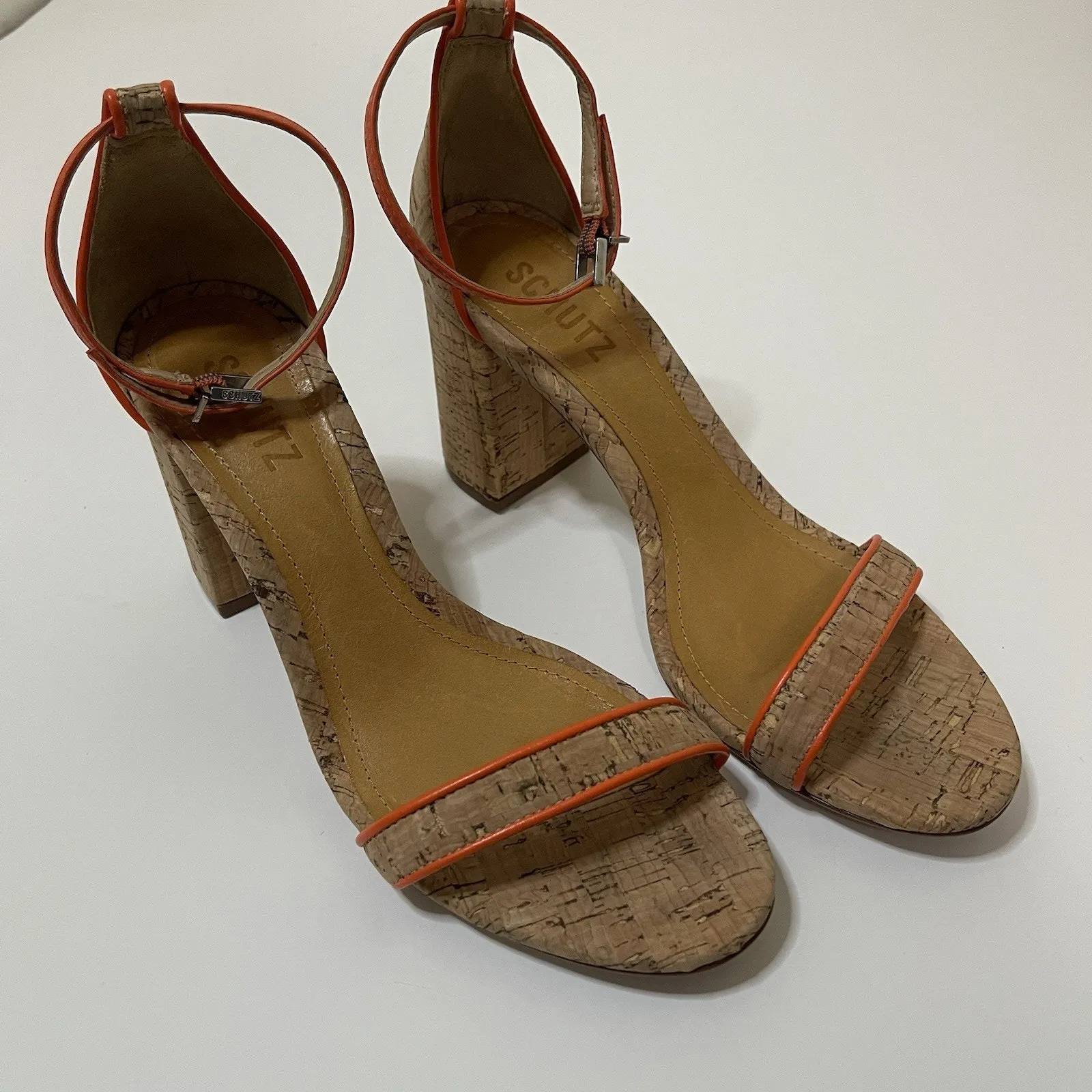 SCHUTZ Cadey Lee Block Casual Leather Sandal orange trim cork US 7.5 - $37 - From kay