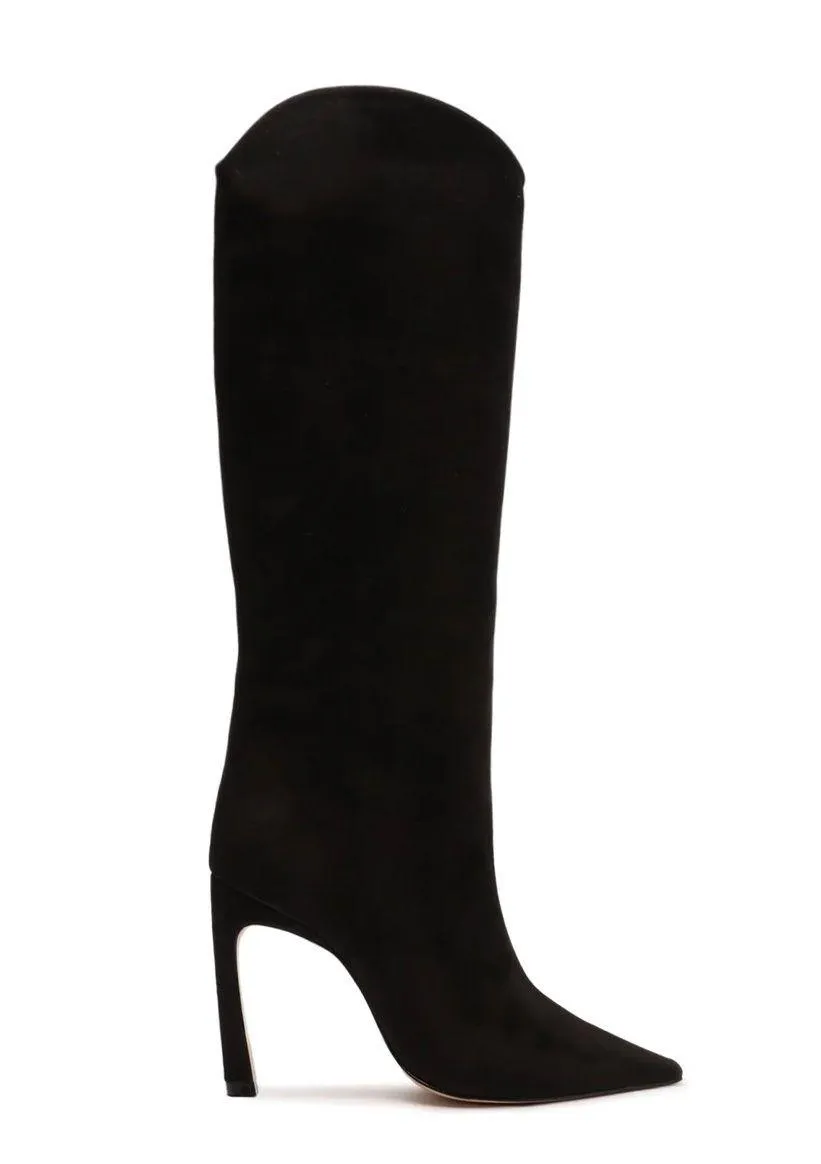 NEW IN BOX A sculpted heel updates our most-loved Maryana Boot, crafted in leather with a pointed toe. Materials: Nubuck | Cow leather lining | Cow leather outsole Upper format: Plain upper Upper Detail: Plain upper Heel Type: High Heel Heel Style: Sculptural Closure Type: Slip-on Toe Style: Pointed toe Counter Type: Closed Shaft Circumference: 14.4in | 360mm Shaft Height: 13.6in | 340mm Heel Height: 3.9in | 100mm Rubber patch at the heel.