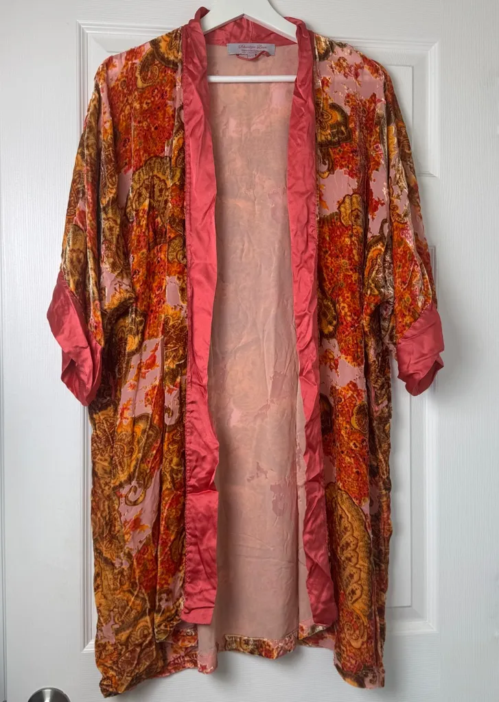 SCHWEITZER LINEN Burnout Silk Robe Orange Pink Lingerie Nighty Honeymoon Size 0 - $39 - From Amazin