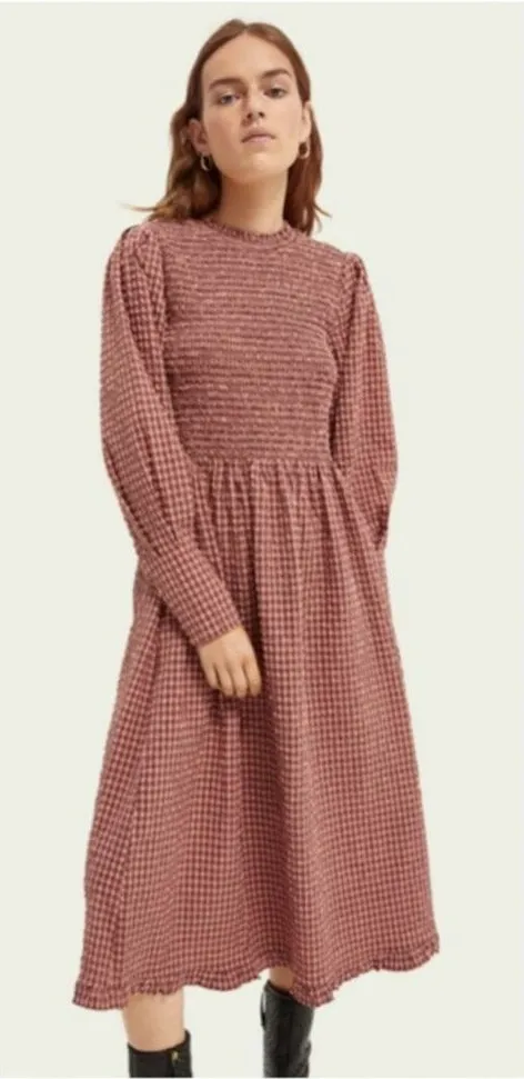 Scotch & Soda Women's Smocked Seersucker Long Sleeve Midi Dress Coral Size XS Brand: Scotch & Soda... Show more