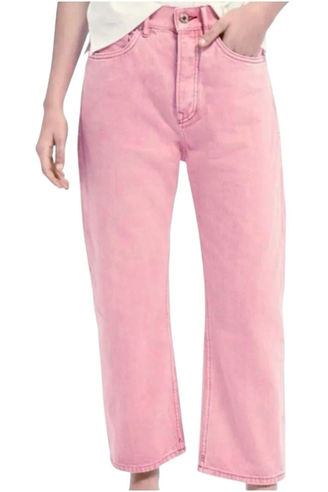 SCOTCH & SODA Women’s Pink Highrise Cropped Boyfriend Jean Red top stitching Button closure Button... Show more