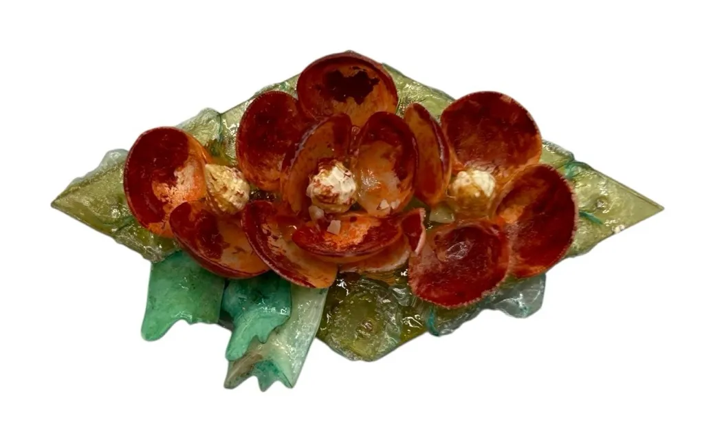 🌺 Statement Floral Art Brooch 🌺 This sculptural flower brooch features layered resin petals in rich red hues over a translucent green base, creating a bold, artistic look with beautiful dimension. Perfect for elevating jackets, sweaters, scarves, or bags — this piece has a true art jewelry / handmade aesthetic and stands out as a wearable mini sculpture. ✨ Details • Sculptural floral brooch • Mixed media resin design • Dimensional layered petals • Secure pin-back closure • Approx. 2.25–2.75” long • Weight: ~4.08g ✨ Condition Pre-owned in good condition. Organic texture, bubbles, and variations are part of the original design. No structural damage observed. A unique piece for lovers of statement jewelry, floral pins, and artistic accessories. floral brooch statement pin resin flower jewelry art jewelry brooch sculptural brooch handmade style pin vintage style brooch unique floral pin