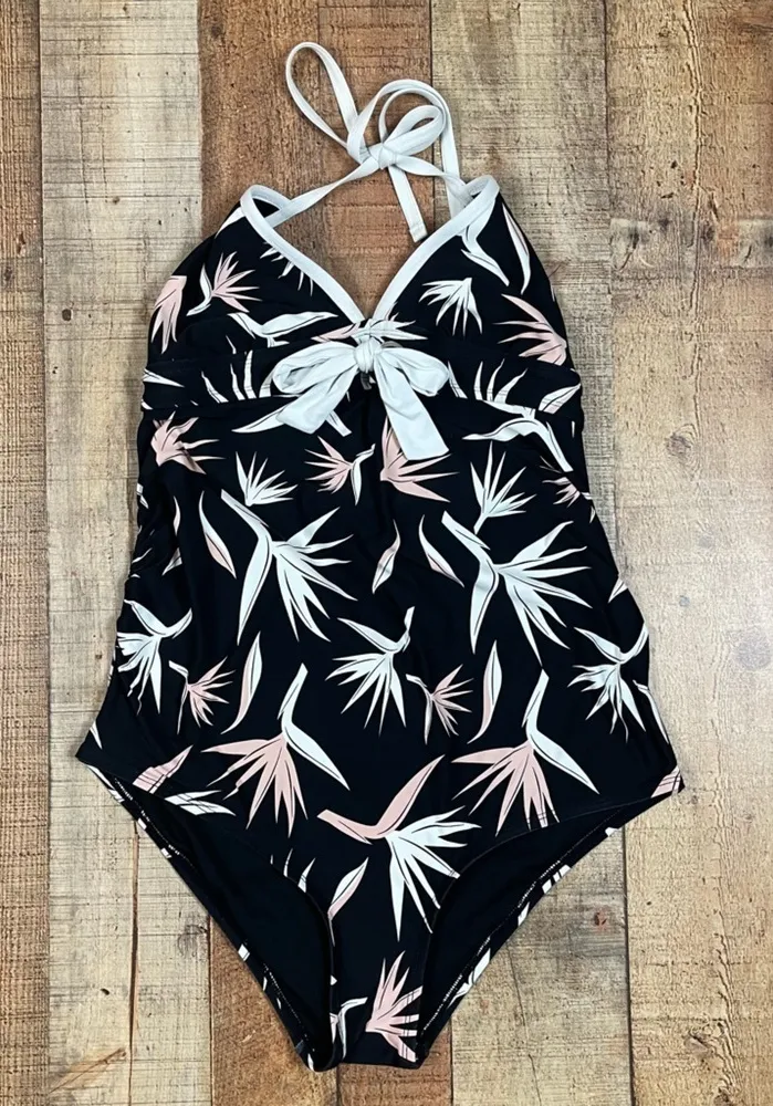 Sea Angel Medium Retro Floral Tropical Pastel V Neck Swimsuit 50’s Black - $10 - From Amanda