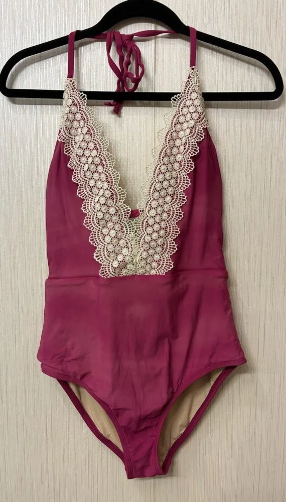 Sea Angel Swimsuit Lace Trim Floral V-Neck Medium White - $12 - From Llanely