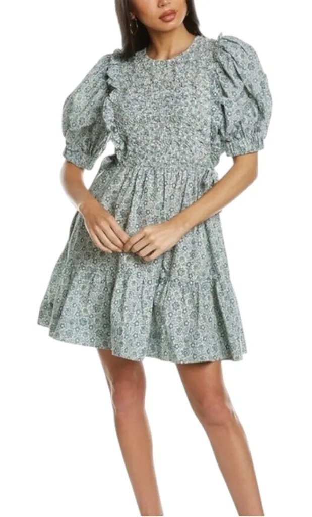 SEA New York Ida Floral Puff Sleeve Smocked Mini Dress in Apple (a sage green color) Size Small - or... Show more