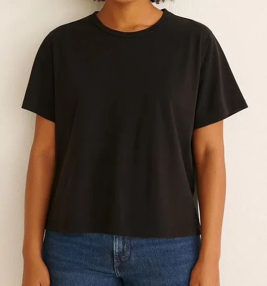 Size L. Woven accent on the back of shirt. Boho style. No sign of flaws noted. Comes from smoke free home. Measurements Length (shoulder to hem) - 22” Width (armpit to armpit) - 21”