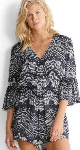 Sea Folly Bandanna Print Bell Sleeve Romper Navy Size XL - $45 - From Bambi
