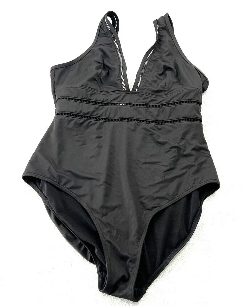 Sealevel Australia Cross Front One Piece Bathing Swim Suit Size 14 Swimwear Sealevel Australia Cross Front One Piece Bathing Swim Suit in size 14 is the perfect addition to your swimwear collection. The solid black color and sleek design make it a stylish choice for any beach or pool day. It is in Great Condition. There are no stains or damage. It is clean and odor-free. I ship out items Monday - Saturday. I took all the photos, and they are of the actual items for sale. Thanks for Visiting my Store!