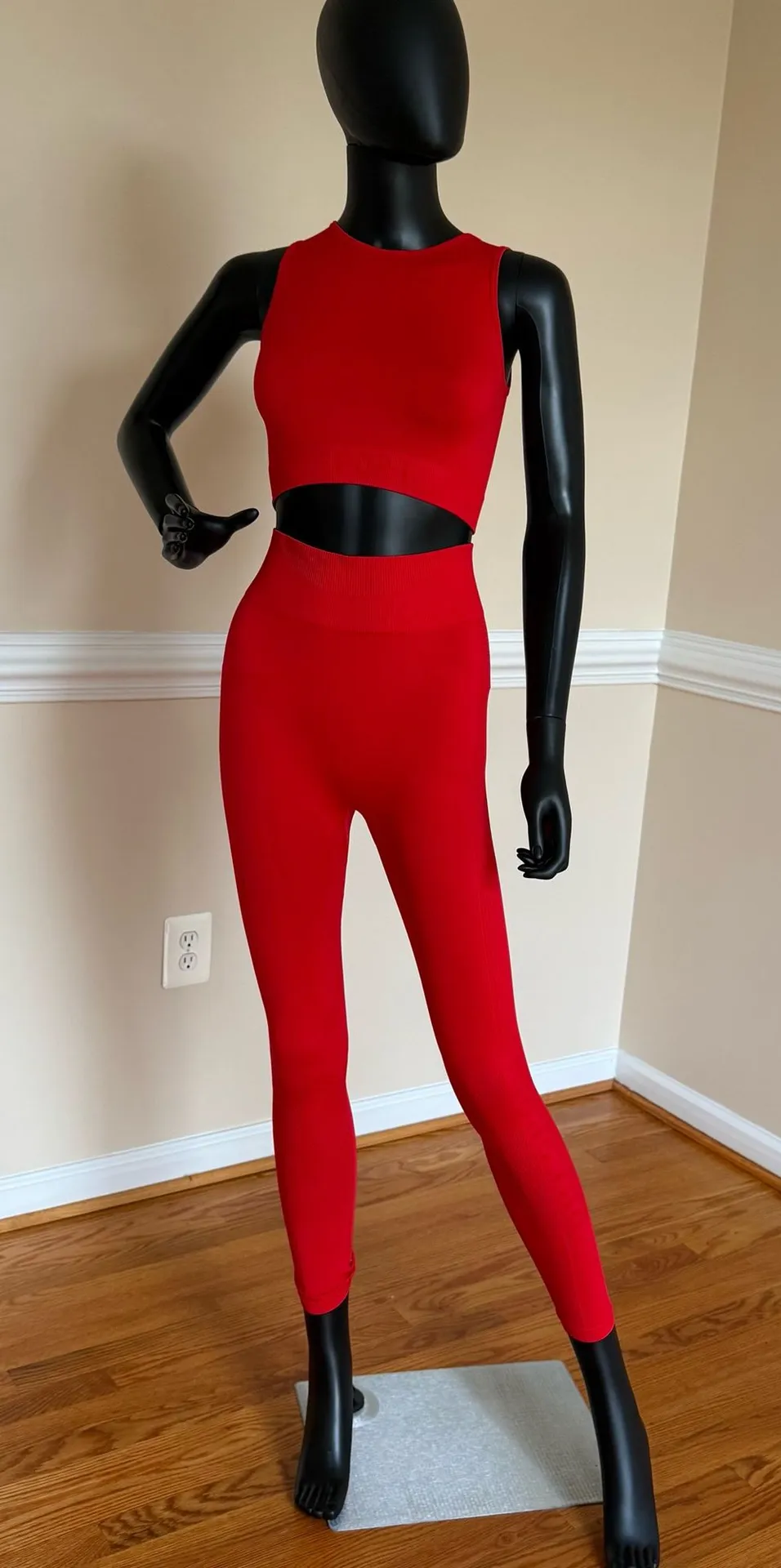 The set has never been worn but it has been washed It is size XS For reference I am 110lbs and 5’2” and it fits me well. I am normally a size XS-S. Mannequin measurements: Bust: 34” Waist: 24” Hip:35” Height: 5’10” •Bright red color •Solid •Stretchy It is sitting in a vacuum bag together with other clothes that I don’t wear and it might have detergent scent. Please ask for all the details necessary before you purchase! The set has never been worn but it has been washed It is size XS For reference I am 110lbs and 5’2” and it fits me well. I am normally a size XS-S. Mannequin measurements: Bust: 34” Waist: 24” Hip:35” Height: 5’10” •Bright red color •Solid •Stretchy It is sitting in a vacuum bag together with other clothes that I don’t wear and it might have detergent scent. Please ask for all the details necessary before you purchase!