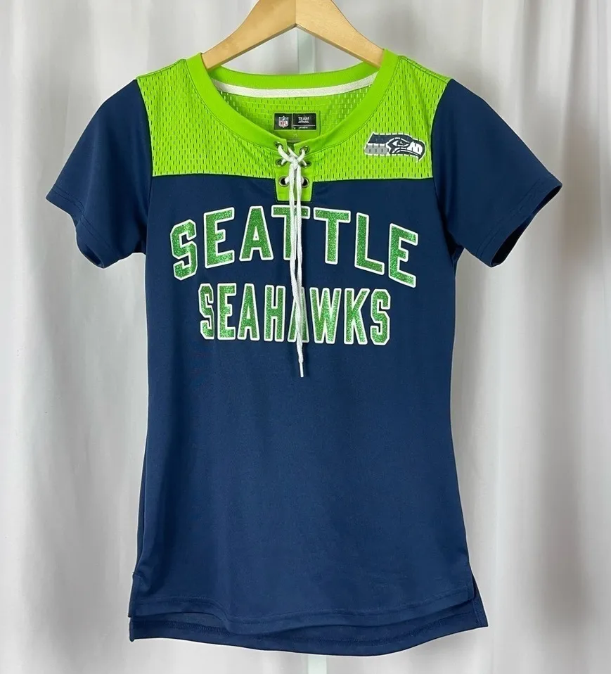 Seattle Seahawks NFL size XS women's jersey Tie up neckline In excellent condition!